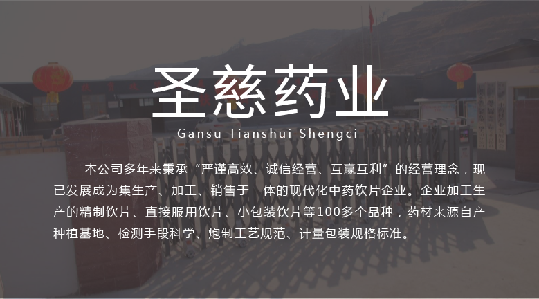 甘肅天水圣慈藥業(yè)有限公司成立于2016年11月8日,注冊資本500萬元,位于甘肅省天水市張川回族自治縣張川鎮(zhèn)中城南路,本公司多年秉承“嚴(yán)謹(jǐn)高效、誠信經(jīng)營、互贏互利”的經(jīng)營理念,現(xiàn)已發(fā)展成為集生產(chǎn)、加工、銷售于一體的現(xiàn)代化中藥飲片企業(yè)。企業(yè)加工生產(chǎn)的精制飲片、直接服用飲片、小包裝飲片等100多個品種,藥材來源自產(chǎn)種植基地、檢測手段科學(xué)、炮制工藝規(guī)范、計量包裝規(guī)格標(biāo)準(zhǔn)。